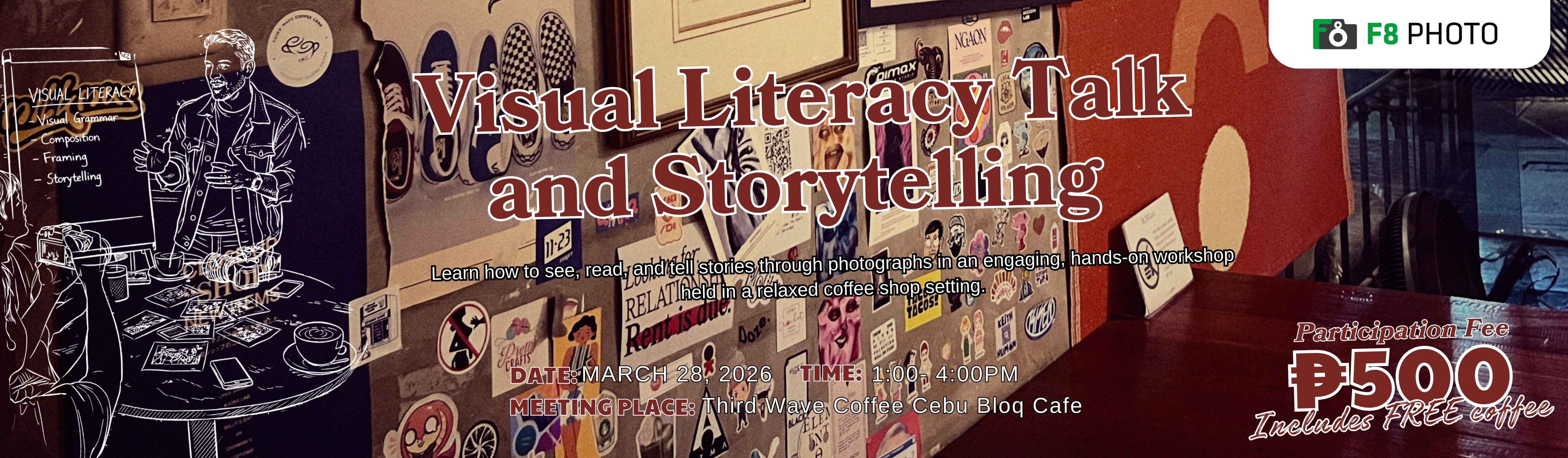 Join an intimate, hands-on creative talk designed for aspiring photographers and photojournalism students looking to sharpen their storytelling skills and develop a stronger visual voice. Learn how to see, read, and tell stories through photographs in a relaxed coffee shop setting with Victor Kintanar, held at Third Wave Coffee Cebu. Open to all levels and camera types—limited slots available.