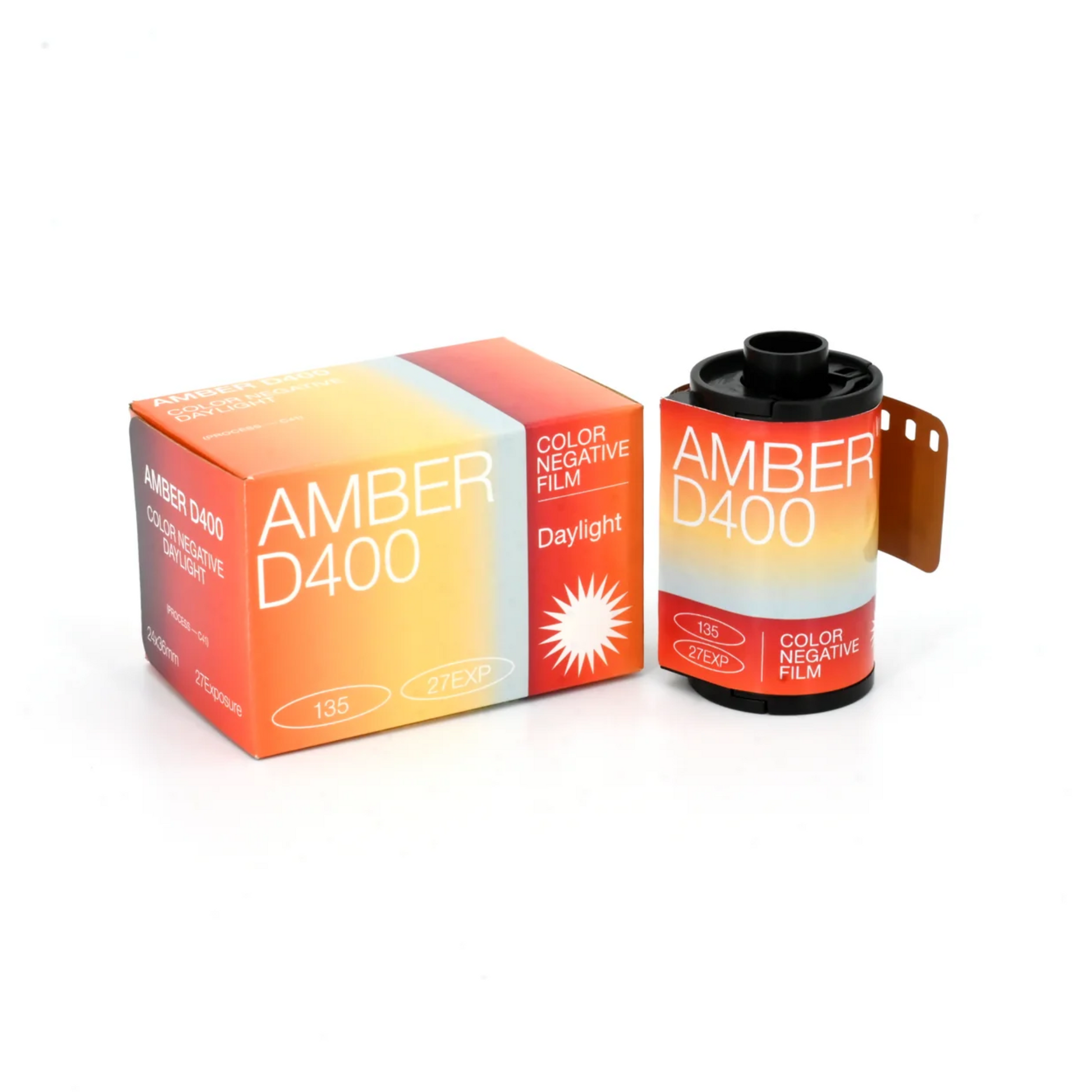 AMBER D400 Film, 27EXP 35MM, is a motion picture film that gives distinct colors and looks when used in different lighting conditions. It is excellent for low-light situations and becomes a cool blue tone if shot in daylight. It requires standard C-41 processing, which is a common and affordable option for lab processing. The film canister consists a DX code, which was already adhered to it, to assist users in setting the correct ISO while shooting with automatic cameras.