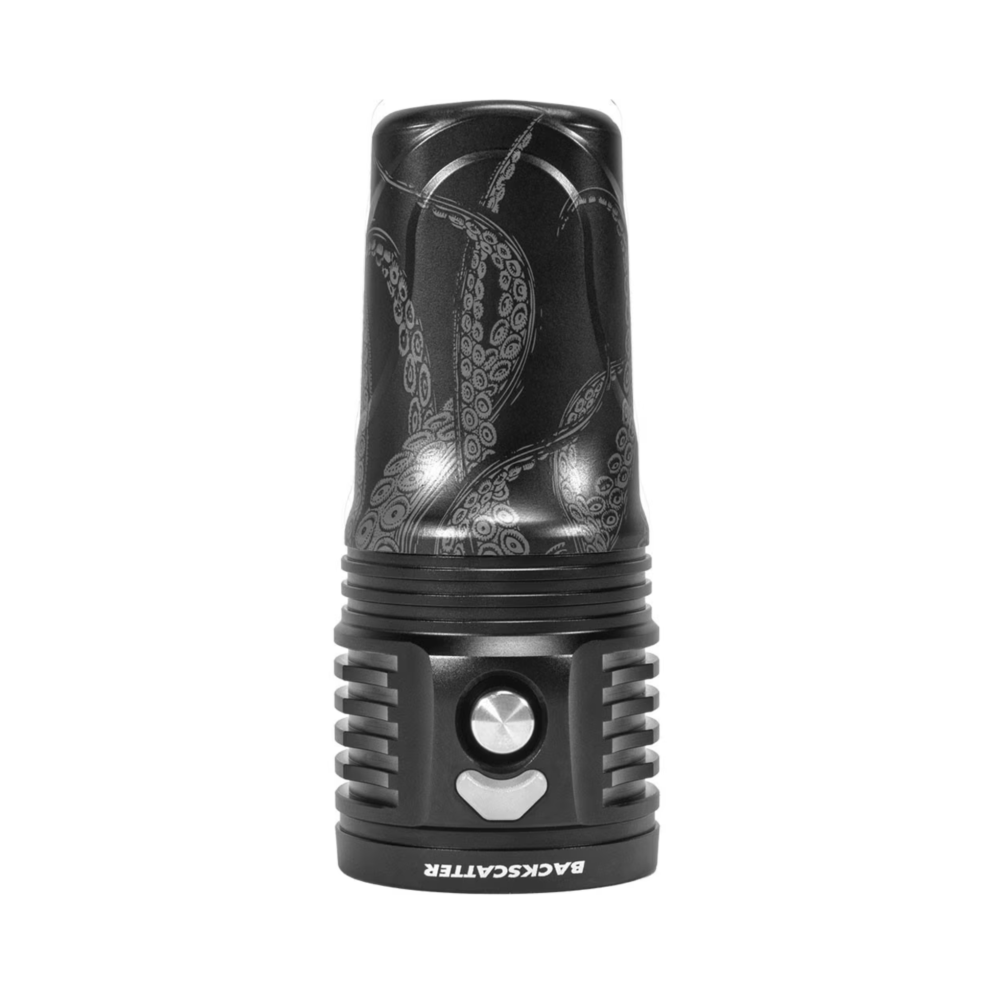 The Backscatter Octo 3500 uses a simple single-button interface making it one of the easiest underwater lights to use. Power it on with five quick presses, tap to cycle through three brightness levels or standby mode, and hold to power off.