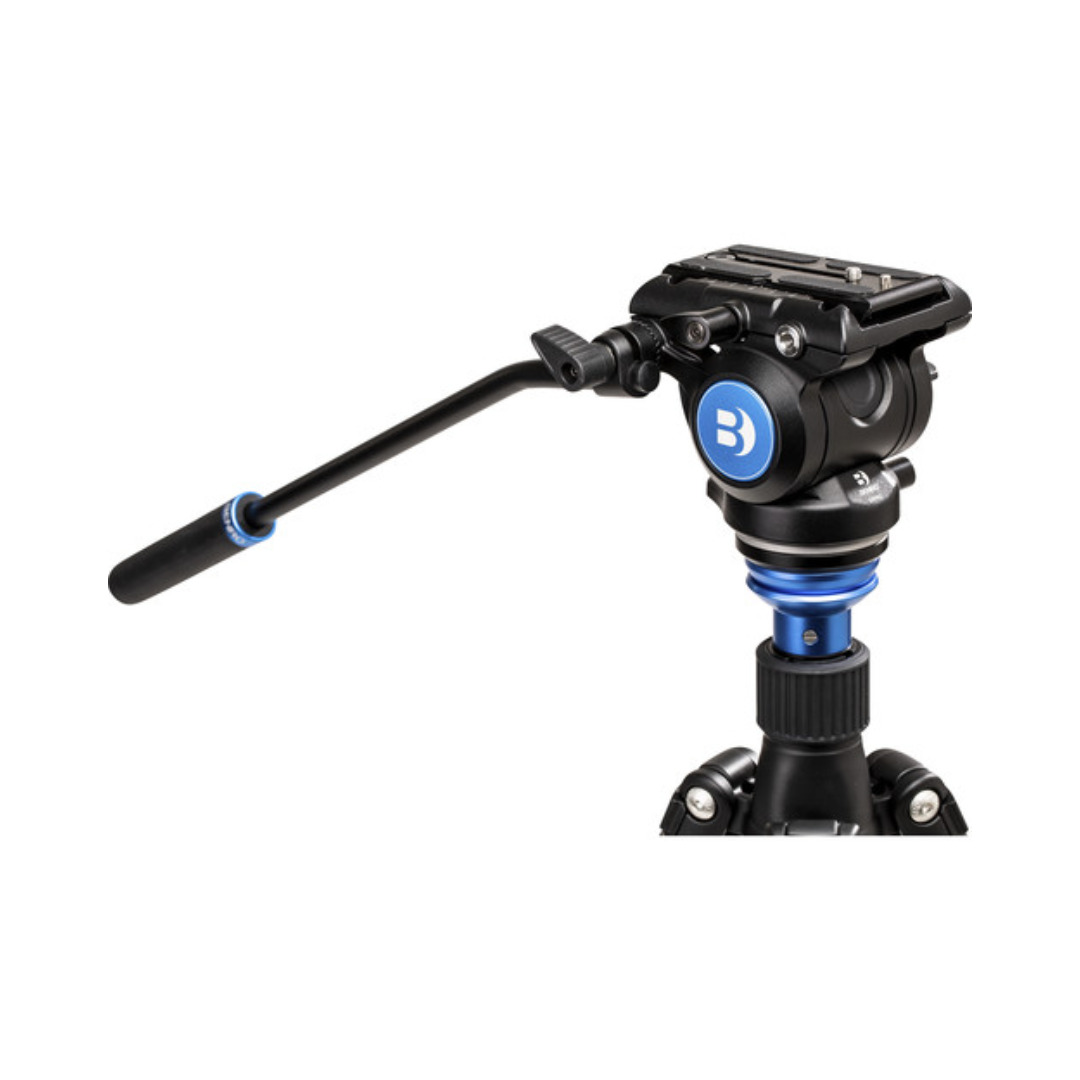 The Benro S4Pro is a compact fluid video head ideal for mirrorless and DSLR camera setups weighing up to 8.8 lb. Featuring a 60mm flat base with a 3/8"-16 threaded hole, it can be used with matching 60mm flat base tripods and tripods with flat base adapters. At the same time, thanks to the flat base, it can be mounted on sliders, jibs, monopods, and other support gear. It can efficiently be moved between such gear.
