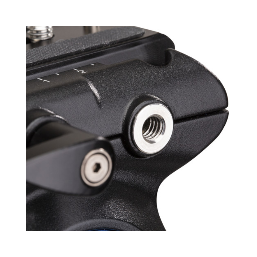- 1/4"-20 and 3/8"-16 camera screws included and can be stored in dedicated spaces on the top of the head, underneath the camera plate