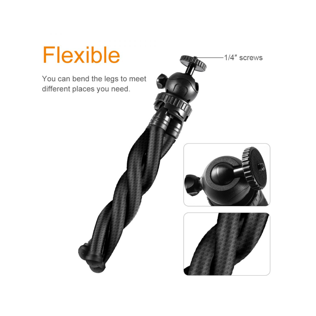 - The flexible tripod legs can allow you to wrap it anywhere you can think of, like lampposts, railing, branches, bicycles or chairs, including a slanted or smooth surface to capture wonderful moment easily as you like.