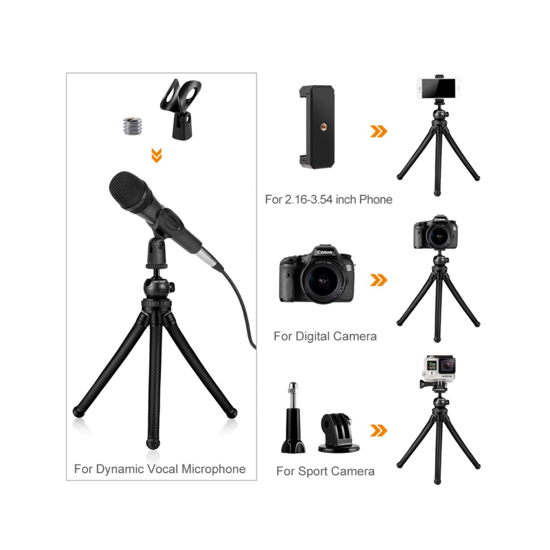 - This multifunctional tripod can be used with DSLR/compact camera/SLR/mirrorless camera tripod /camera + all GoPro Hero 5/4/3 + 3/Session (including GoPro adapter) + iPhone/Android smart phones. Extra 3/8 adapter screw, microphone clip, Gopro mount, and bluetooth remote control come with together.