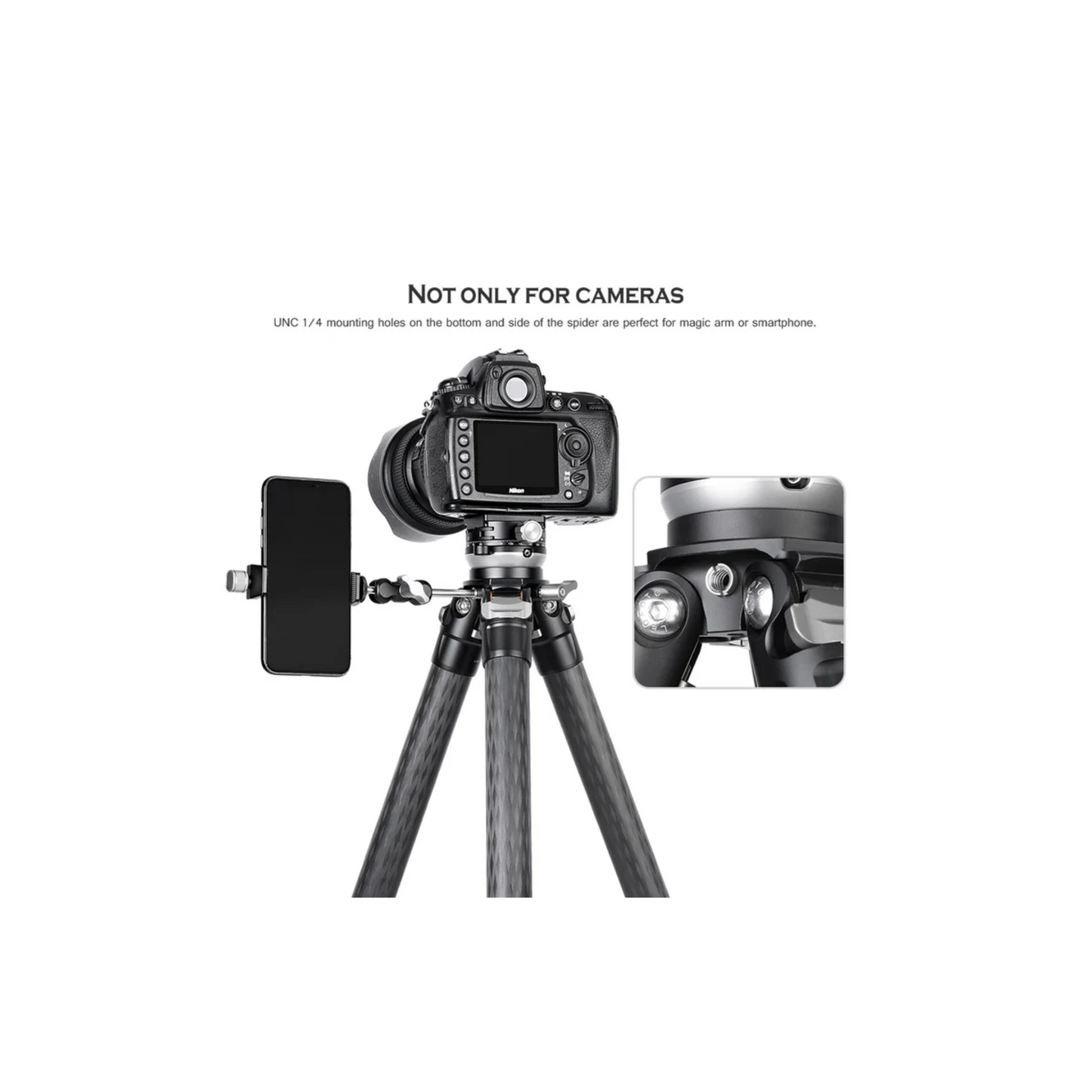 The Leofoto LS-255CEX Ranger Series Carbon Fiber Tripod is a lightweight and durable tripod. The LS-CEX Series of tripods differ from other LS Ranger Series carbon fiber tripods due to the incorporated leveling base. This feature makes this tripod suitable for videoconferencing, low perspective, and panoramic photography. The tripod head can be adjusted for horizontal orientation after the tripod has been positioned for the shot without having to individually adjust the legs. *Leveling base is incorporated to the apex and cannot be removed.