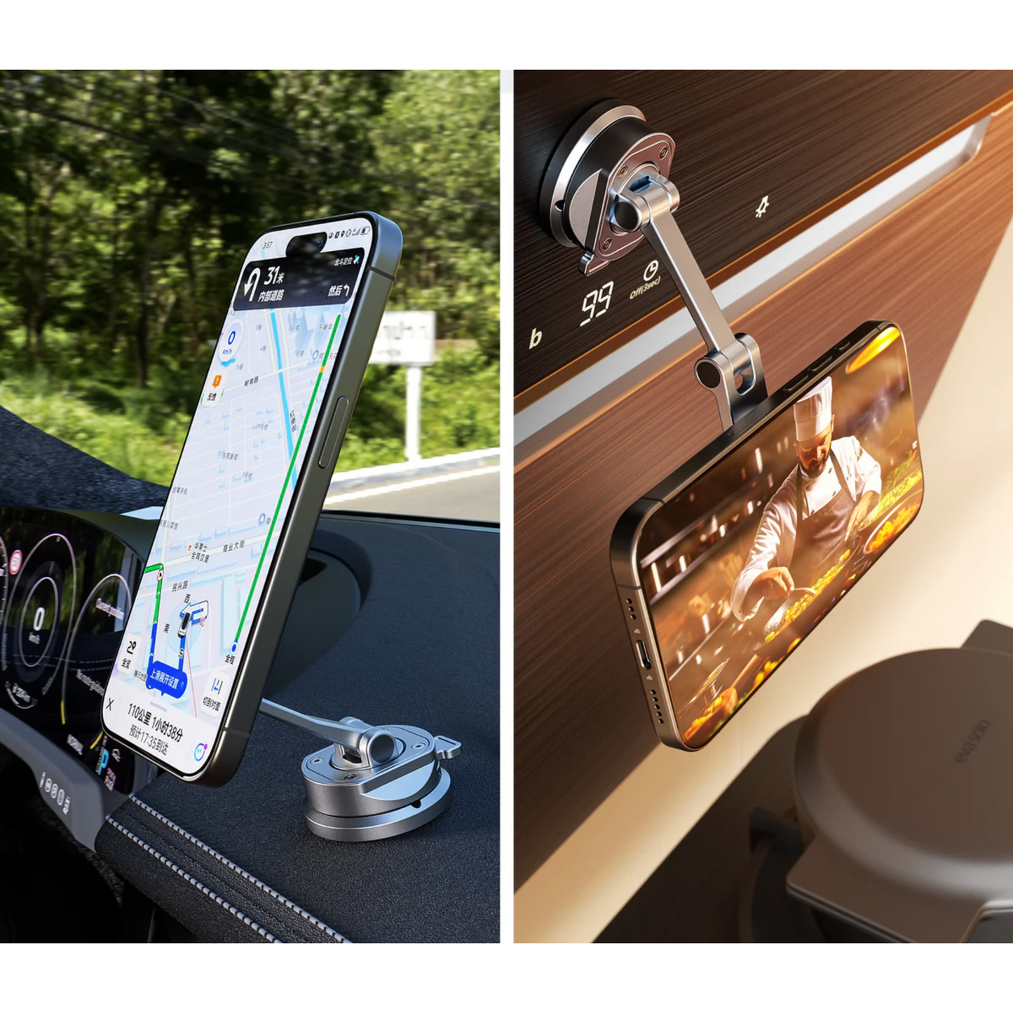 This mount is ideal for both on-the-road navigation and professional photography setups, offering robust support and an intuitive user experience, all packaged in a stylish, all-metal silver finish.