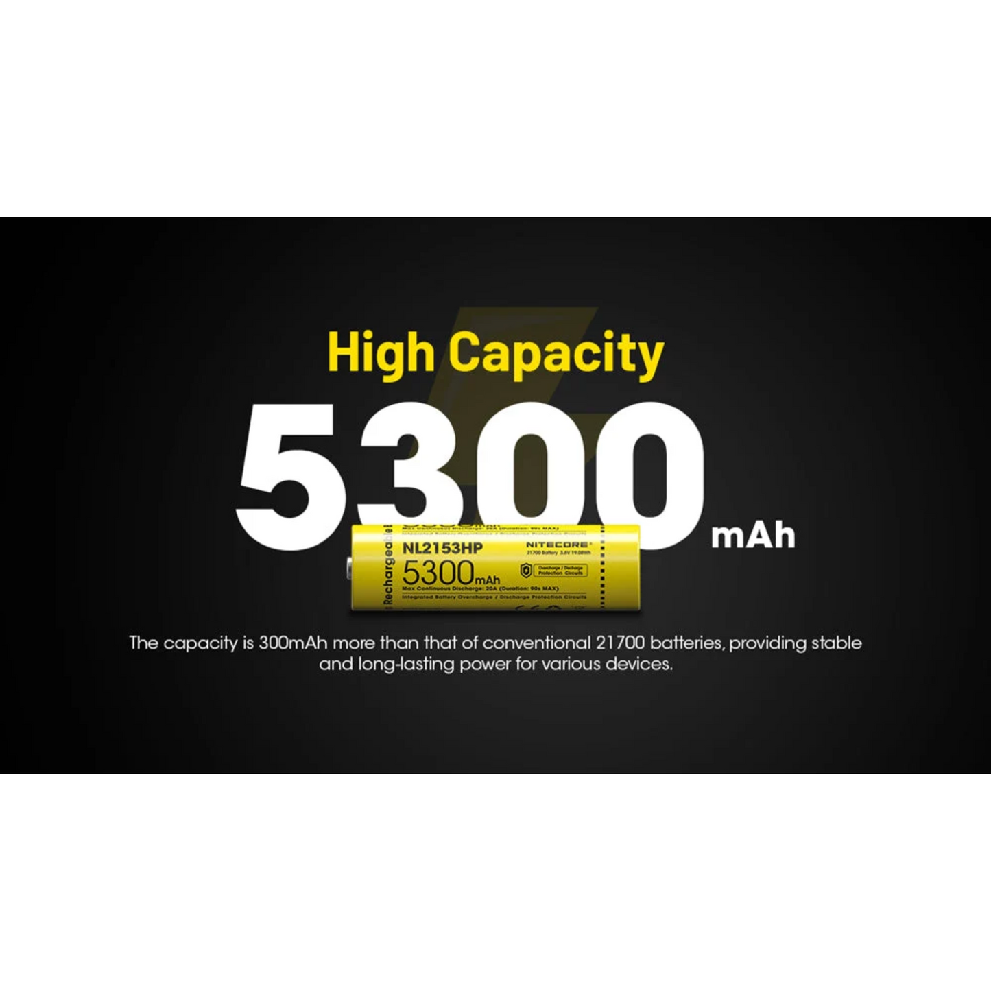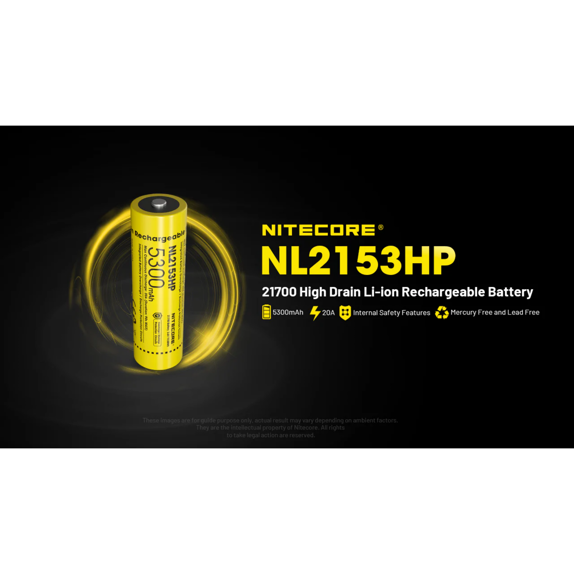From Nitecore's latest battery generation, the NL2155HP stands out with an impressive 5300mAh capacity, making it an excellent choice for high-drain devices due to its continuous 20A discharge current. Despite its compact size, the NL2155HP boasts an impressive energy density of 268.7 mWh/g, which is 9% higher than other conventional 21700 batteries. Endowed with Nitecore's hallmark safety features and quality engineering, the NL2155HP stands as a testament to the brand's reputation as a reliable source of rechargeable Li-ion batteries.