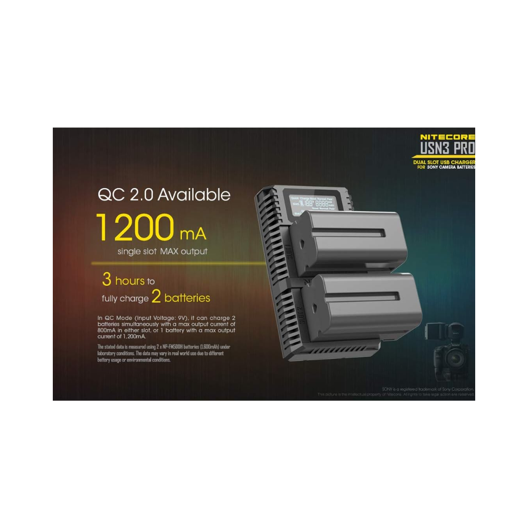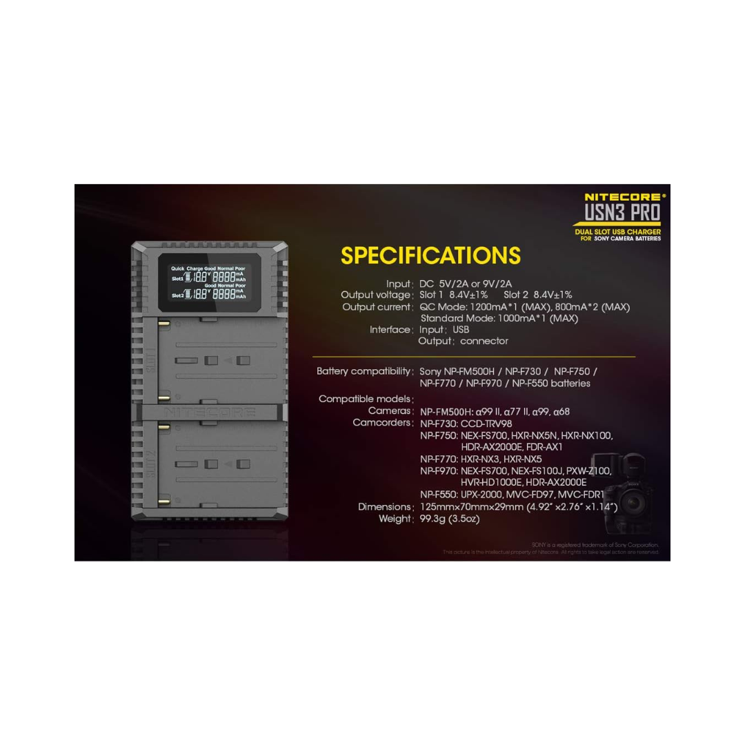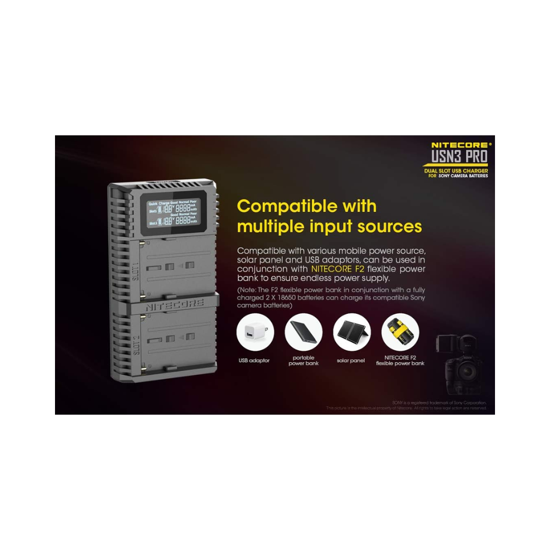 Nitecore USN3 Pro Dual-Slot USB Charger, for Sony Camera Batteries