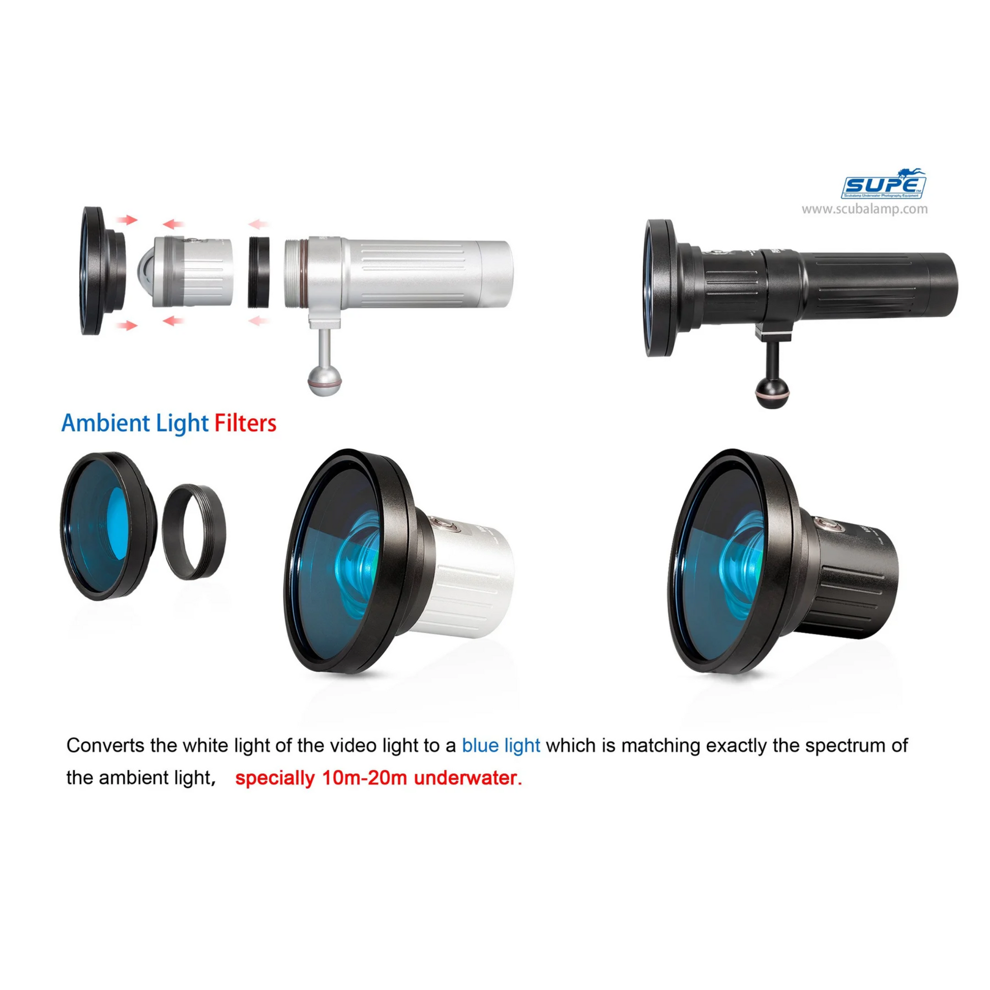 Ambient light filter for Scubalamp V4K, V4K V6K and V3K video lights