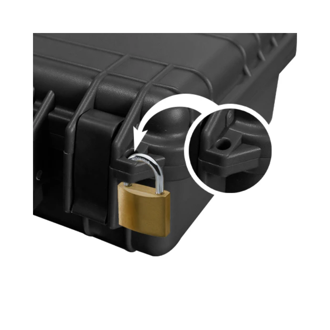 Press and Pull Latches Hold fast under impact and create flat surface for upright stability Solid-core handles are both comfortable and durable Shock proof, vibration proof, dust proof and rust proof Sealed for moisture protection Pressure release valve Stackable Tested Optional Divider